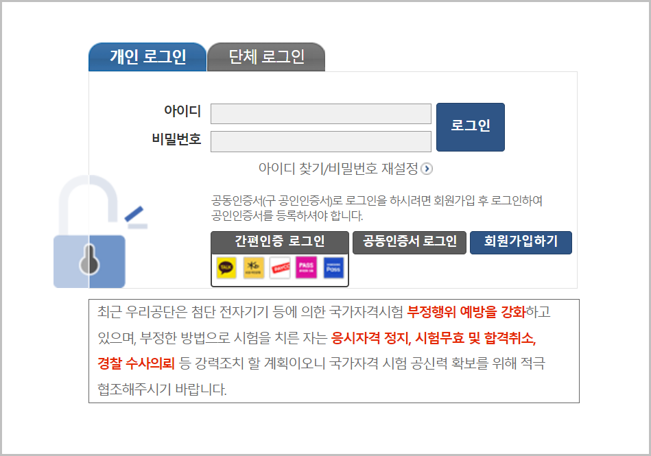 자격증 조회를 하려면 먼저 큐넷 회원 로그인이 필요합니다. 이미 회원가입을 해두셨다면 아이디와 비밀번호를 입력해서 바로 로그인할 수 있고, 처음 이용하시는 경우에는 신규 회원가입을 먼저 진행해야 합니다.