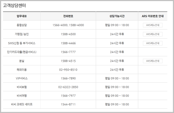 일반 개인회원이라면 이 두 번호만 알고 있어도 이용한도, 결제일, 분실 신고, 단기카드대출(현금서비스) 등 대부분의 업무를 처리할 수 있습니다. 각 제휴은행 콜센터로 연결하는 별도 번호들도 있지만, 비씨카드 대표번호로 전화해서 안내에 따라 이동하는 편이 한결 편리한 경우가 많습니다.