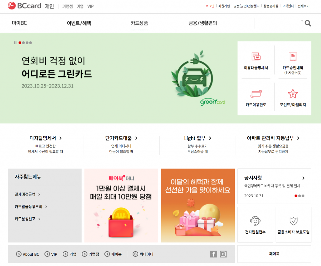 비씨카드 홈페이지에서 확인할 수 있는 정보
