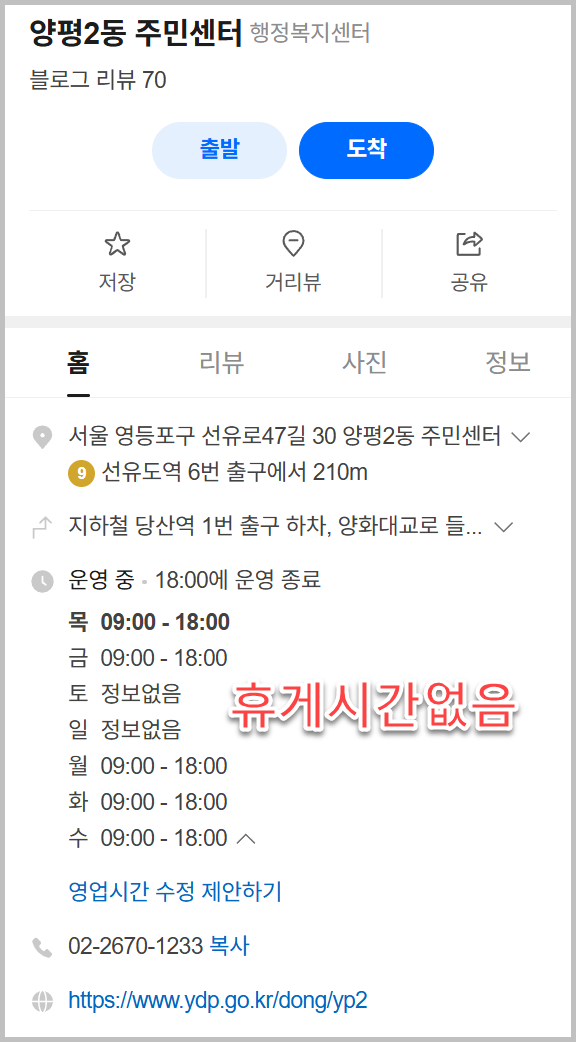 행정복지센터 점심시간 (동사무소 업무시간) 안내