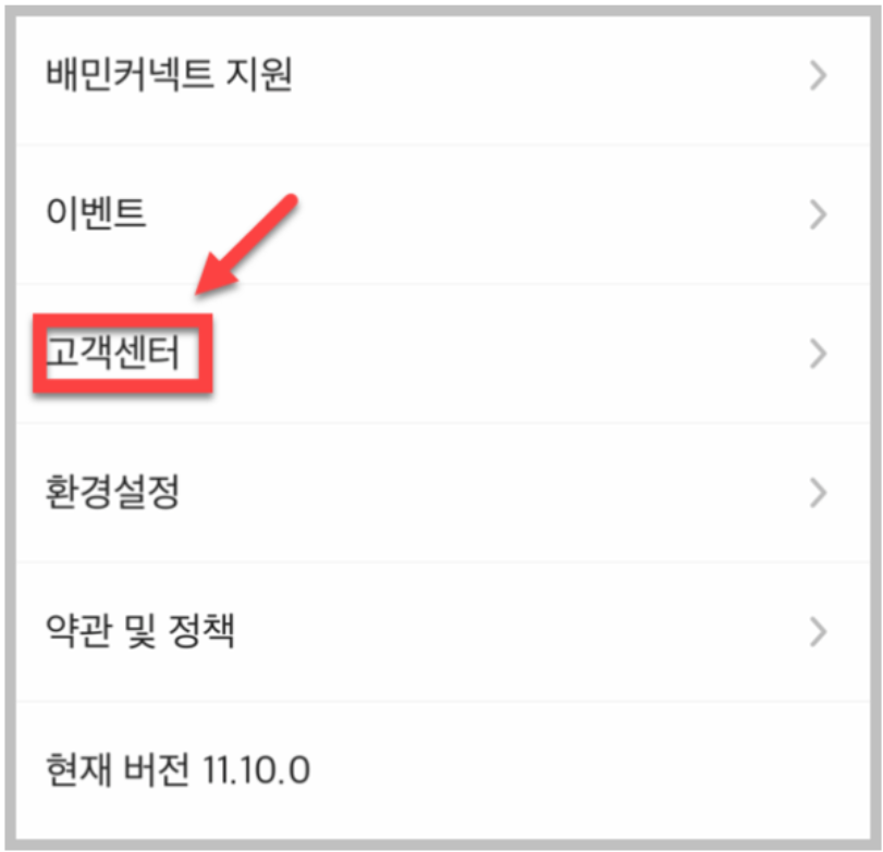 배달의민족 앱에서 고객센터 메뉴 찾는 방법