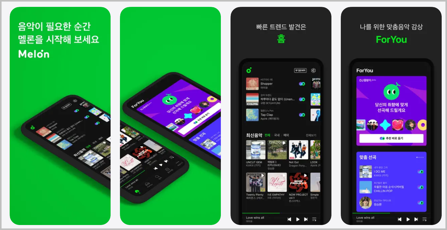 멜론은 2004년에 정식 서비스를 시작한 국내 대표 음원 서비스입니다. 이후 스트리밍, 다운로드, 뮤직비디오, 개인 맞춤 추천, 음악 인식(방금 그 곡) 등 기능을 계속 확장해 왔습니다. 다양한 음원 서비스가 등장했지만, 국내 이용자 수와 인지도 기준으로는 여전히 상위권을 유지하고 있습니다. 특히 방대한 국내 음원 보유량과 차트 영향력 때문에 아이돌 팬덤을 중심으로 꾸준히 활용되고 있습니다.
