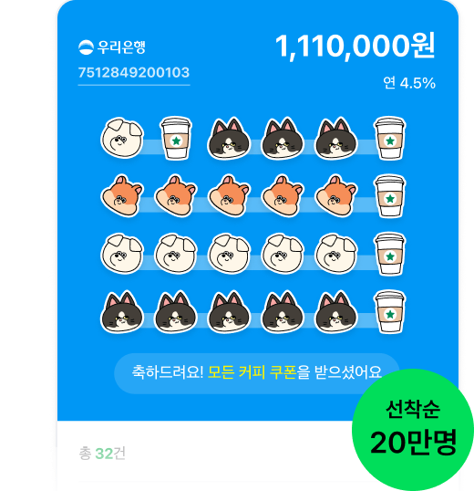 매주 정해진 요일에 출석 체크를 하면 네이버페이 포인트를 지급하며, 일정 주기를 달성할 때마다 스타벅스 커피 쿠폰을 제공합니다. 24주 동안 꾸준히 출석 미션을 완료하고 우리은행 앱인 우리WON뱅킹 설치 및 마케팅 동의 조건을 충족하면 최대 7잔의 커피 쿠폰을 받을 수 있습니다. 이자 수익에 커피 쿠폰 가치까지 더하면 체감 수익률은 훨씬 높아집니다.
