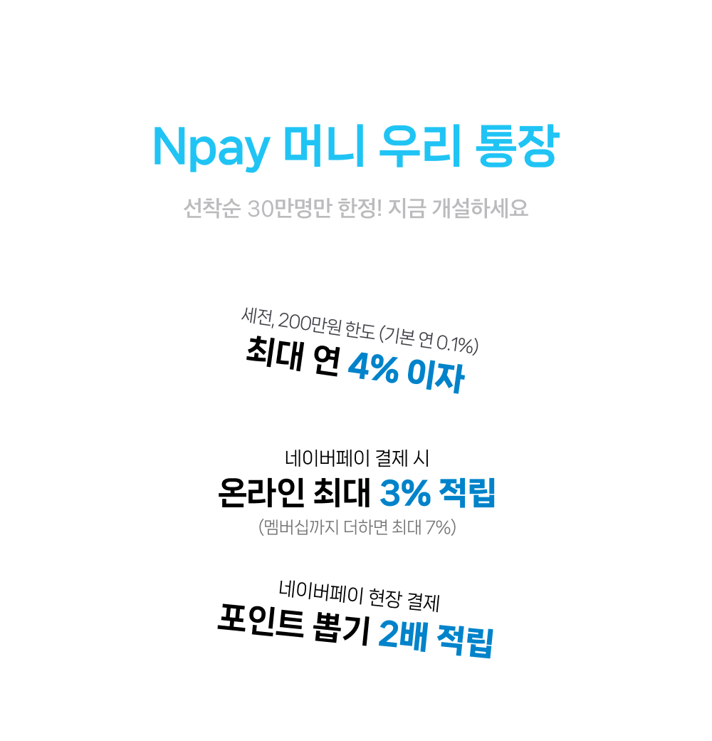 보통 시중은행의 일반 입출금 통장 금리가 0.1% 수준인 것과 비교하면 매우 파격적인 혜택이라고 볼 수 있습니다.다만 이 금리는 200만 원 한도 내에서 적용되며 가입 후 1년 동안만 유지되는 이벤트성 혜택입니다. 1년이 지나면 금리가 낮아지지만, 당장 굴려야 할 비상금이나 소액 자산이 있다면 1년 동안은 충분히 활용할 가치가 있습니다. 또한 이 통장을 네이버페이 결제 계좌로 연결해 사용하면 최대 3%의 포인트 적립 혜택도 함께 누릴 수 있어 쇼핑을 자주 하는 분들에게 유리합니다.