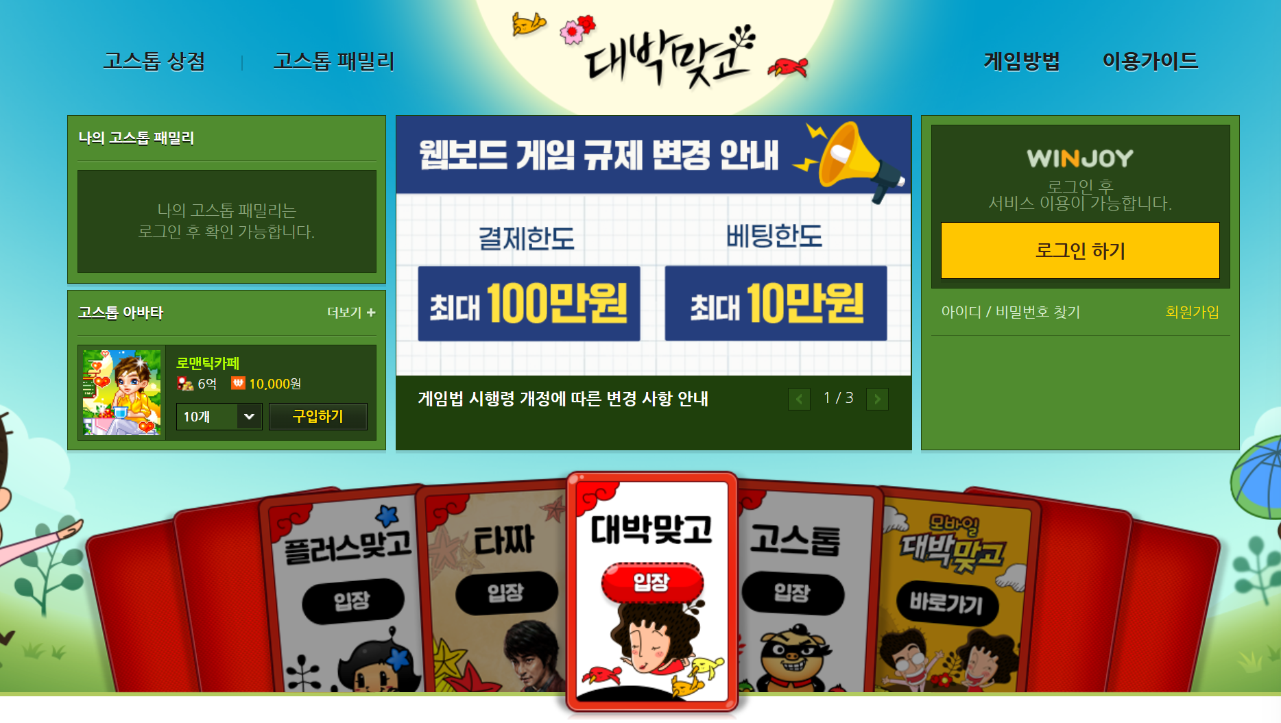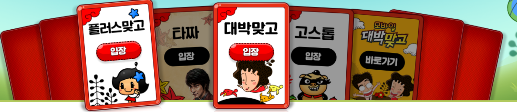 - 홈페이지 중앙의 대박맞고 입장 버튼 클릭
